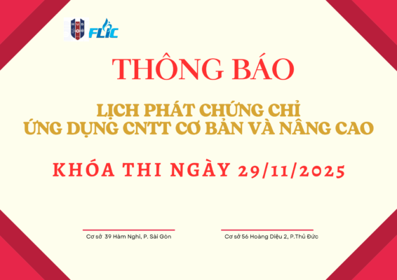 Thông Báo 43 – Thông báo tổ chức thi TOEIC – Lịch thi 22/07/2023 Thông tin liên hệ: 39 Hàm Nghi, Quận 1, Tp.HCM (028) 38.214.055 info@flic.edu.vn 0909.901.277 Website: www.flic.edu.vn / www.buh.edu.vn 56 Hoàng Diệu 2, Quận Thủ Đức, Tp.HCM (028) 38.971.649 028.66.813.713 0909.901.277